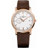 - Flat Silver dial with 18kt Rose Gold hands & applied index hour markers.