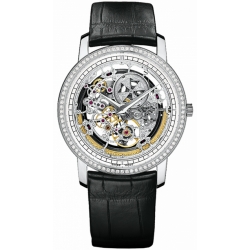Men's Vacheron Constantin Patrimony Traditionnelle Collection Openwork Dial Design 18K White Gold Watch Reference #43578/000g-9393.