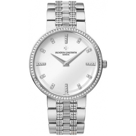 Men's Vacheron Constantin Patrimony Traditionnelle Collection 18K White Gold Diamond Bracelet Watch Style #81574/V03G-9427.