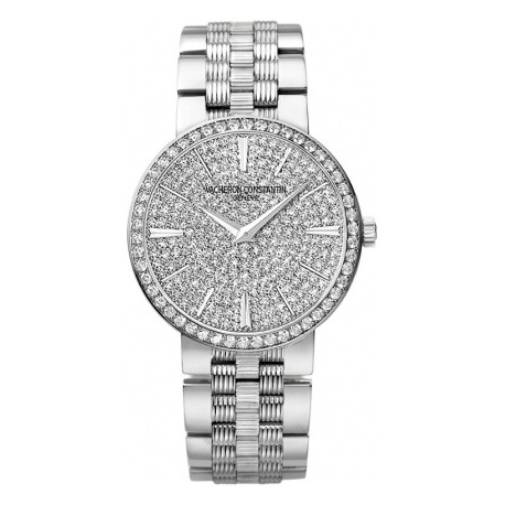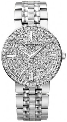 - Dial pave set with 264 brilliant-cut, Top Wesselton VS quality diamonds weighing approx. 0.91 carats.