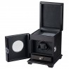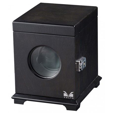 This Volta single watch winder 31-560011 features a matte rustic brown finish with a black leather interior. The inside portion of this winder is lit by a white LED light that beautifully showcases the watch that is mounted onto the winder. On the top of the winder, you will find an empty storage space where you can store your favorite jewelry. The watch portion of the winder can be locked using the supplied key. The watch mount is powered by its own high quality and ultra quiet Japanese Mabuchi motor. To control the motor of the winder, you will find an LCD screen on the back side of the winder. Using the buttons to the right of the screen, you can control the revolution direction and the speed (TPD) of the winder. You are able to select a clockwise setting, a counterclockwise setting, or a combination of clockwise and counterclockwise revolutions. With this Volta winder, you are able to select a speed (TPD) setting of 650, 900, 1350, or 1800 revolutions, so you will definitely be able to find the right setting for your specific watch. Please check other single watch winders.