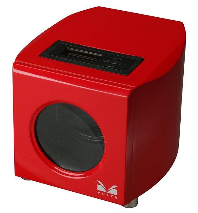 This Volta single watch winder 31-560014 features a high gloss red finish with a black leather interior. The inside portion of this winder is lit by a white LED light that beautifully showcases the watch that is mounted onto the winder. This winder can be locked using the supplied key to ensure the safety of your prized possessions. The watch mount is powered by its own high quality and ultra quiet Japanese Mabuchi motor. To control the motor of the winder, you will find an LCD screen on the top of the winder. Using the buttons to the right of the screen, you can control the revolution direction and the speed (TPD) of the winder. You are able to select a clockwise setting, a counterclockwise setting, or a combination of clockwise and counterclockwise revolutions. With this Volta winder, you are able to select a speed (TPD) setting of 650, 900, 1350, or 1800 revolutions, so you will definitely be able to find the right setting for your specific watch. Each winder has its own serial number and can be registered online.