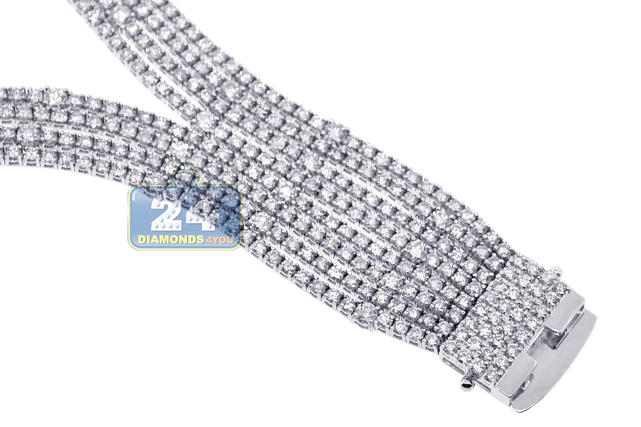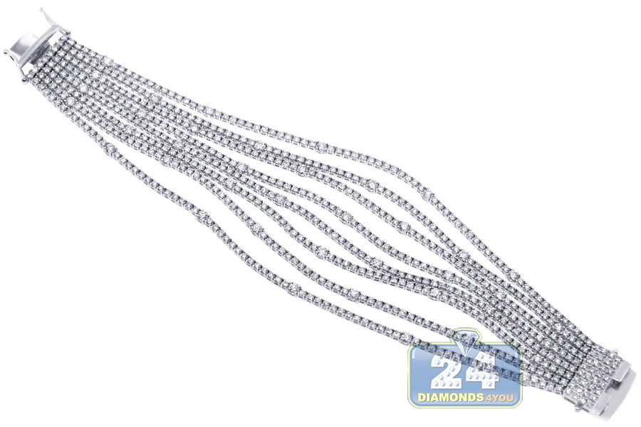 18K White Gold 19.94 ct 8 Row Diamond Womens Tennis Bracelet