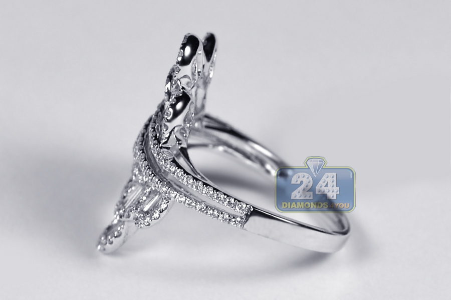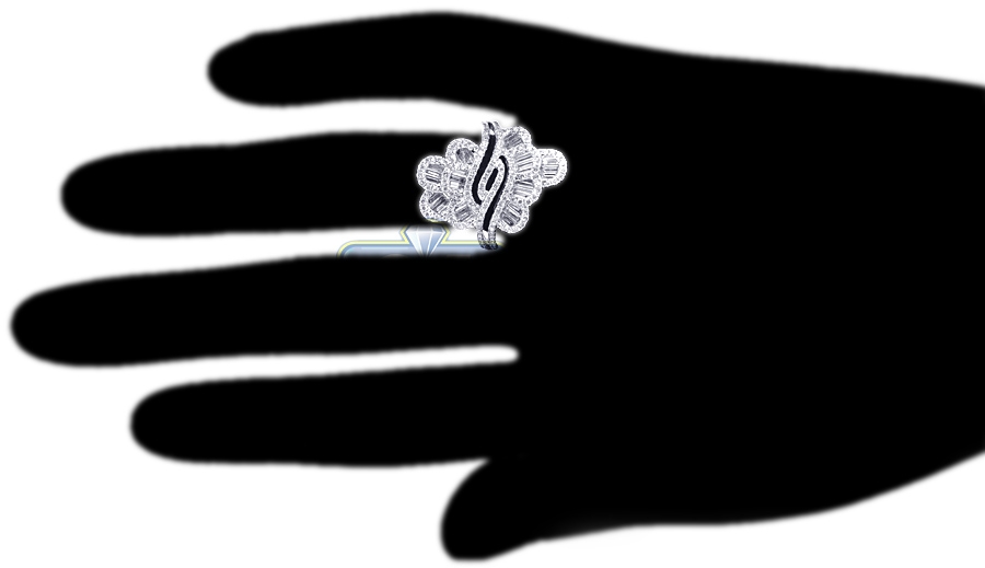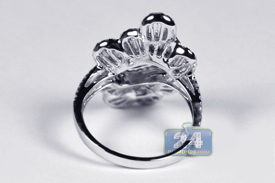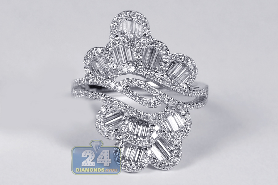 Womens Baguette Diamond Floral Ring 18K White Gold 1.53 ct