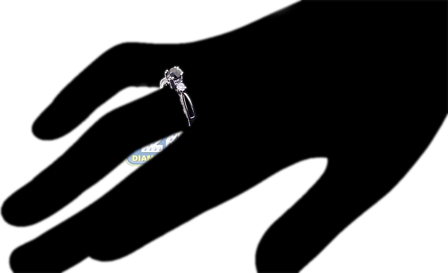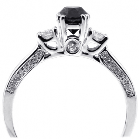 With our elegant black diamond three stone ring you'll catch yourself staring at your hand all day long! Lovely created from lustrous 14k white gold, it's set with enhanced black round-cut natural diamond in the center (0.82 ct), and icy white round brilliant-cut diamonds on the sides (all totaling 0.25 carat). This women's 3-stone ring can be a perfect engagement piece as well as an anniversary gift.