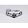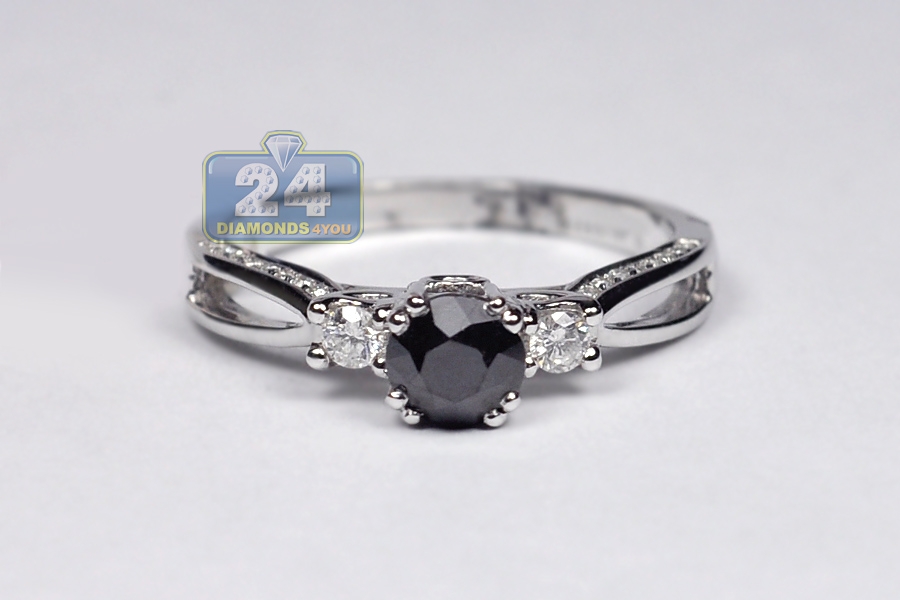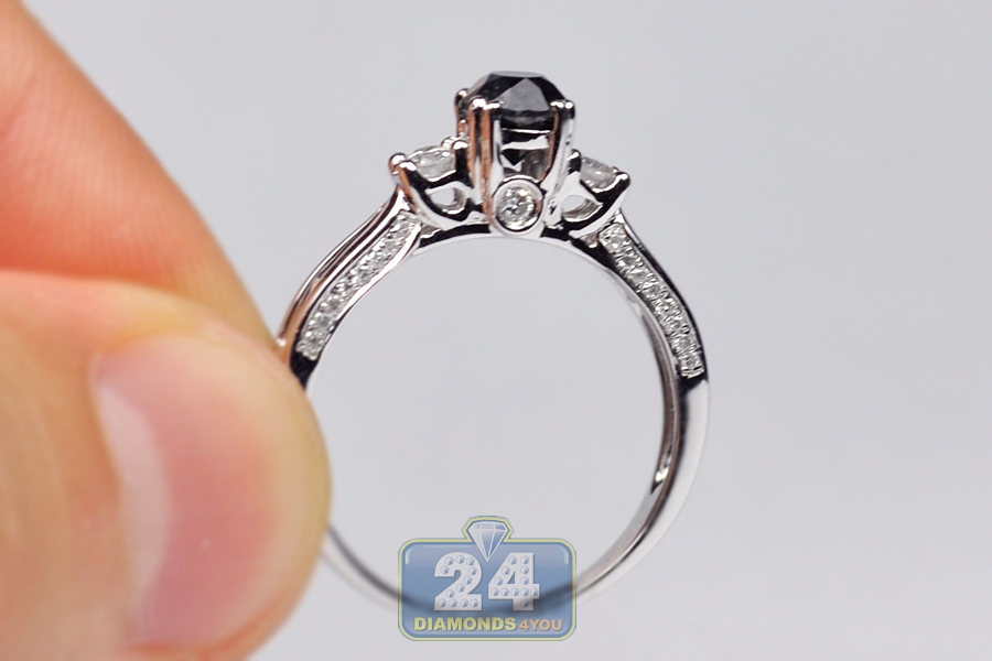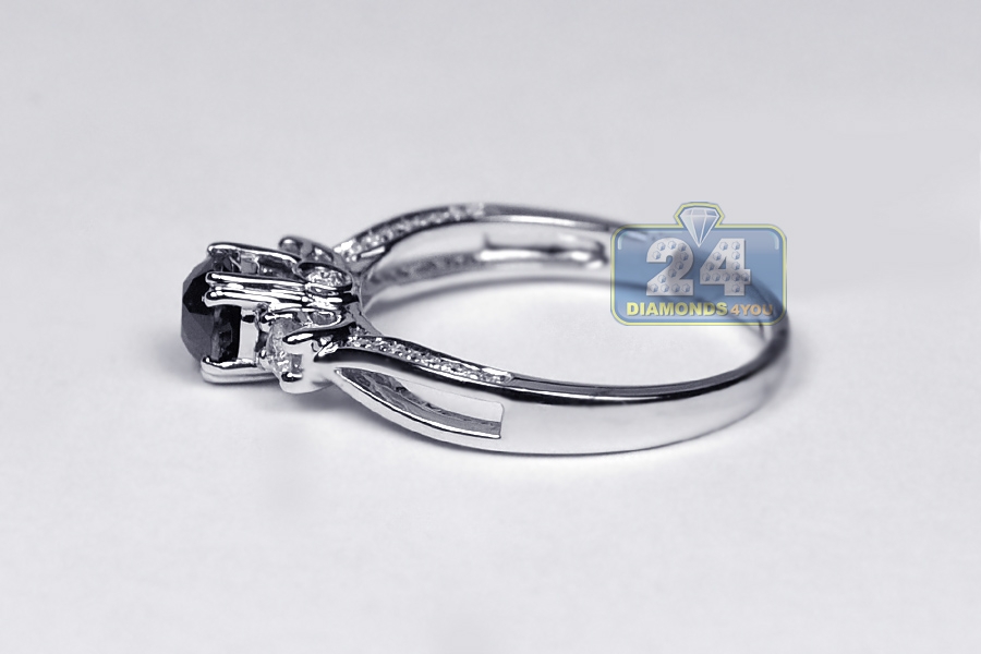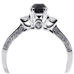 Womens Black Diamond 3-Stone Ring 14K White Gold 1.07 ct