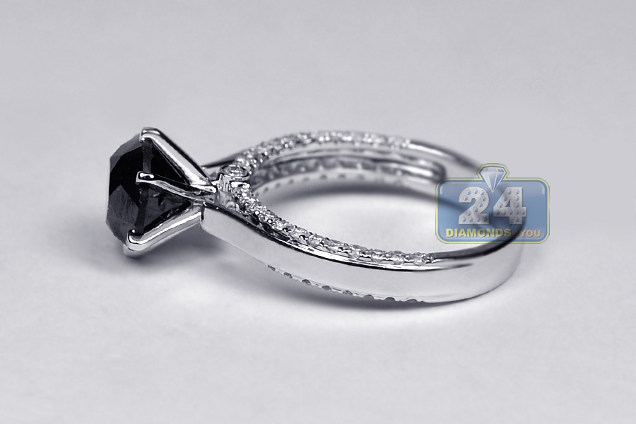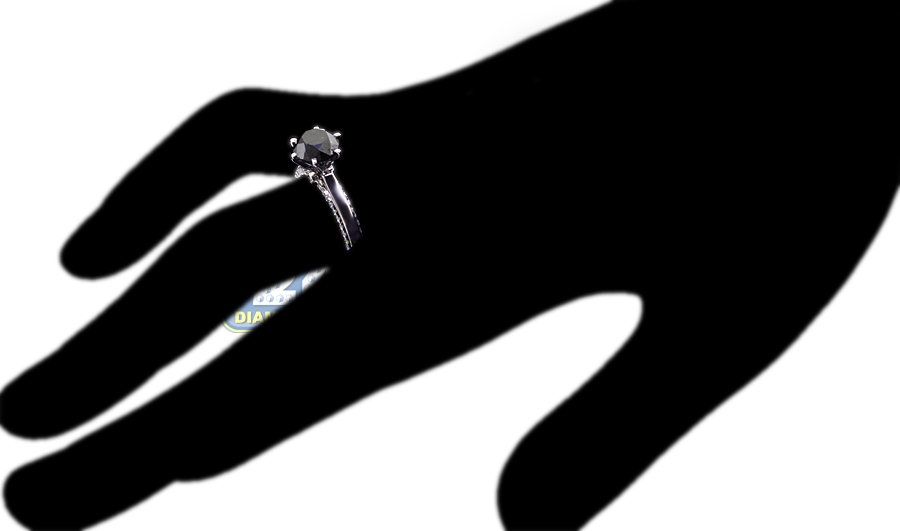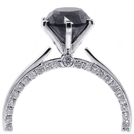 Womens Black Diamond Solitaire Engagement Ring 14K Gold 3.15 ct