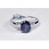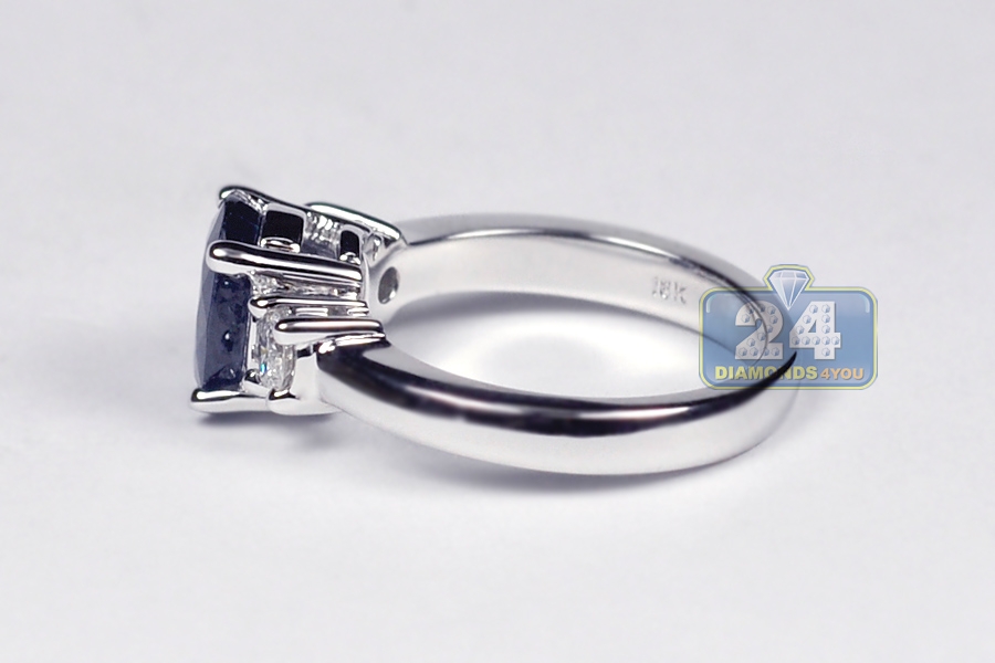 18K White Gold 2.30 ct Blue Sapphire Diamond 3 Stone Ring