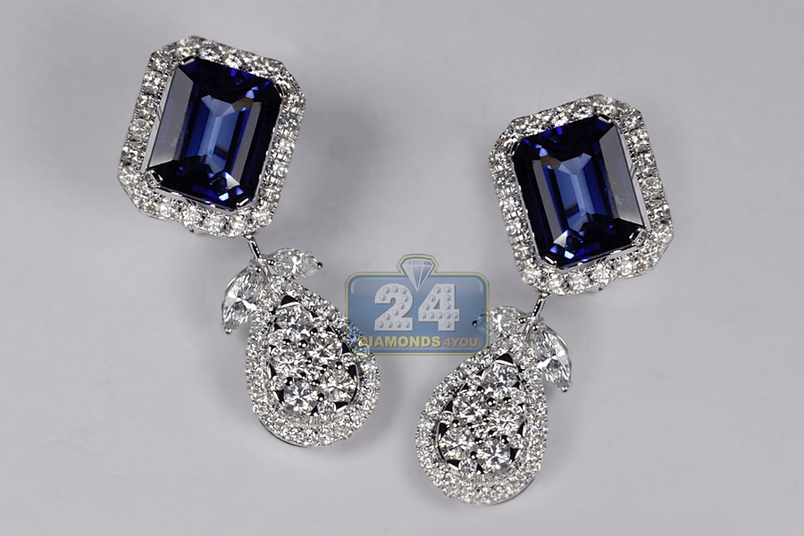 18K White Gold 19.08 ct Blue Sapphire Diamond Drop Earrings