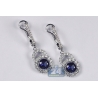 18K White Gold 2.93 ct Blue Sapphire Diamond Womens Earrings