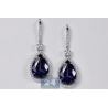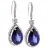 18K White Gold 18.26 ct Blue Sapphire Diamond Hook Earrings