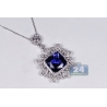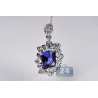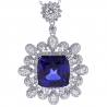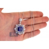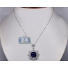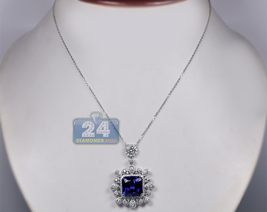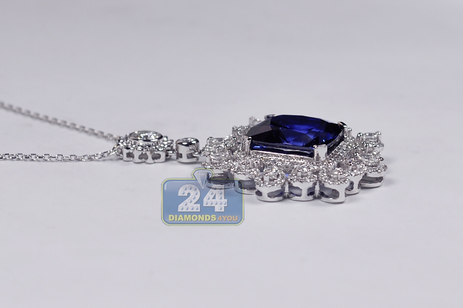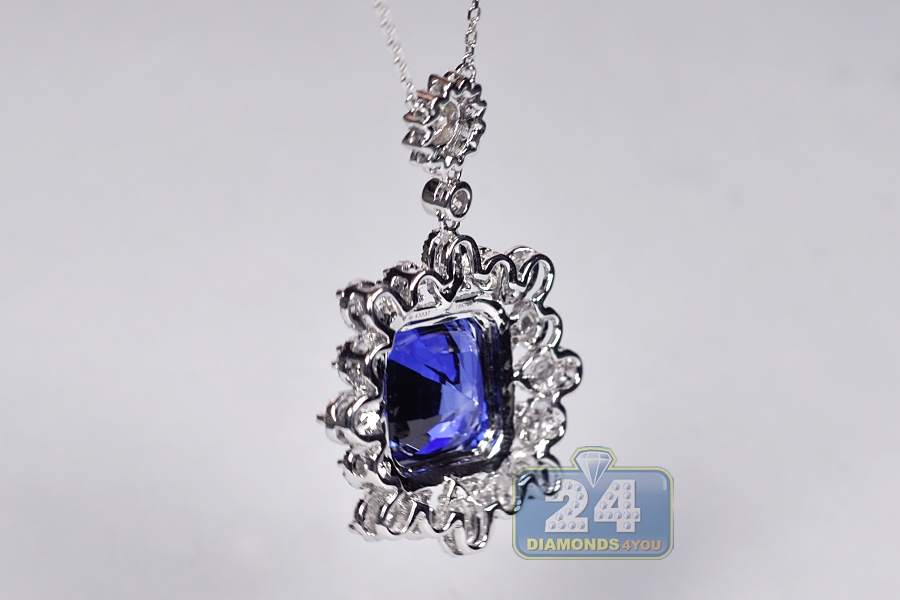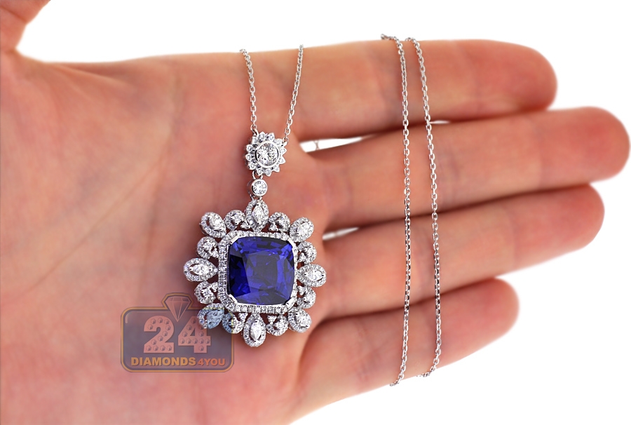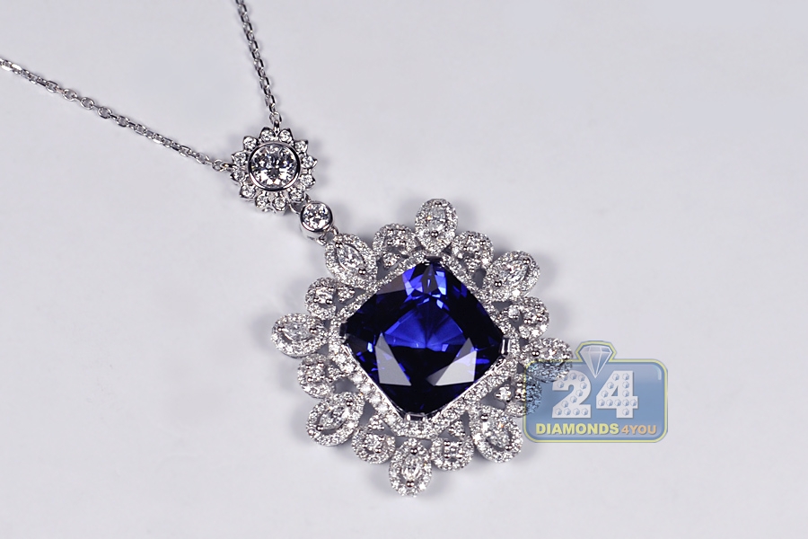 18K White Gold 18.33 ct Blue Sapphire Diamond Pendant Necklace