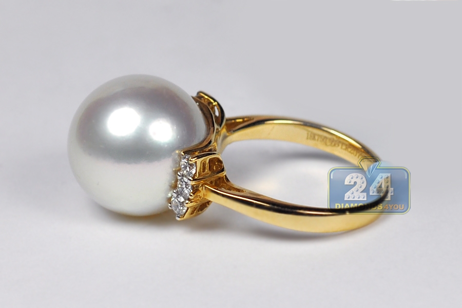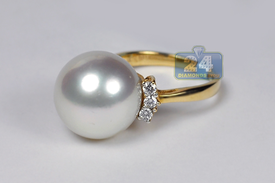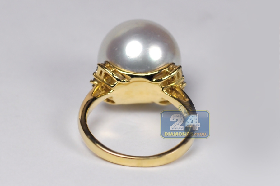 18K Yellow Gold 0.33 ct Diamond 15 mm Pearl Womens Ring