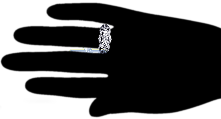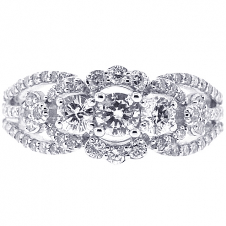 Get ready to sparkle a lot wearing our elegant diamond 3-stone ring! It's masterly created from cool 18k white gold with polished smooth finish. It's also encrusted with icy white round brilliant-cut natural diamonds, all totaling 1.33 carat. Designed in halo style, the setting has many beautiful details... All these make this women's cluster ring perfect as a anniversary band. or as a piece of jewelry for special events!