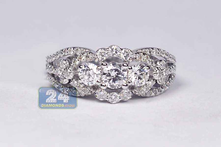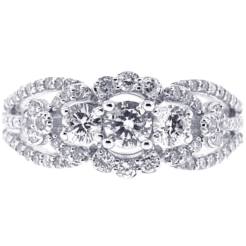 18K White Gold 1.33 ct Diamond 3 Stone Womens Ring