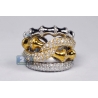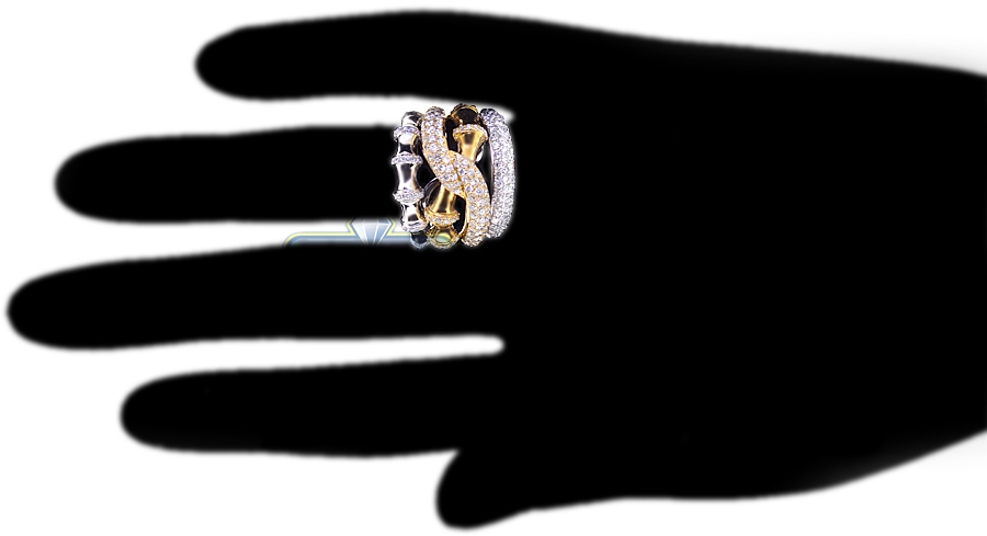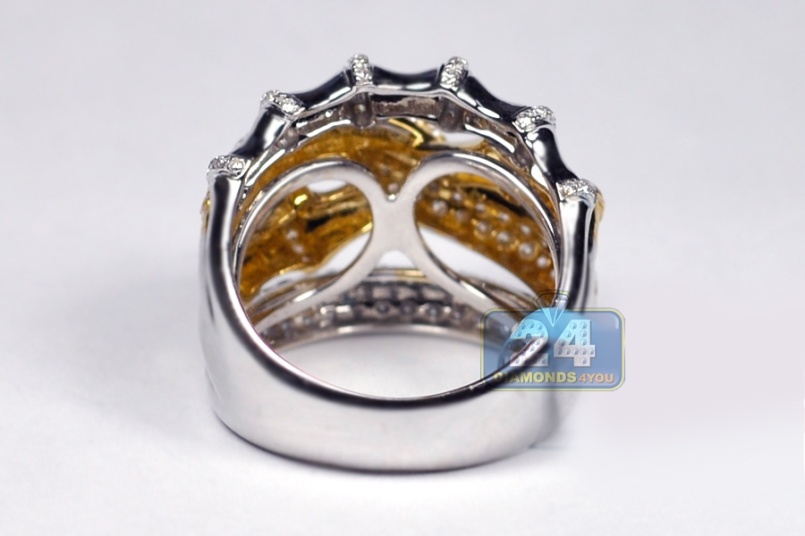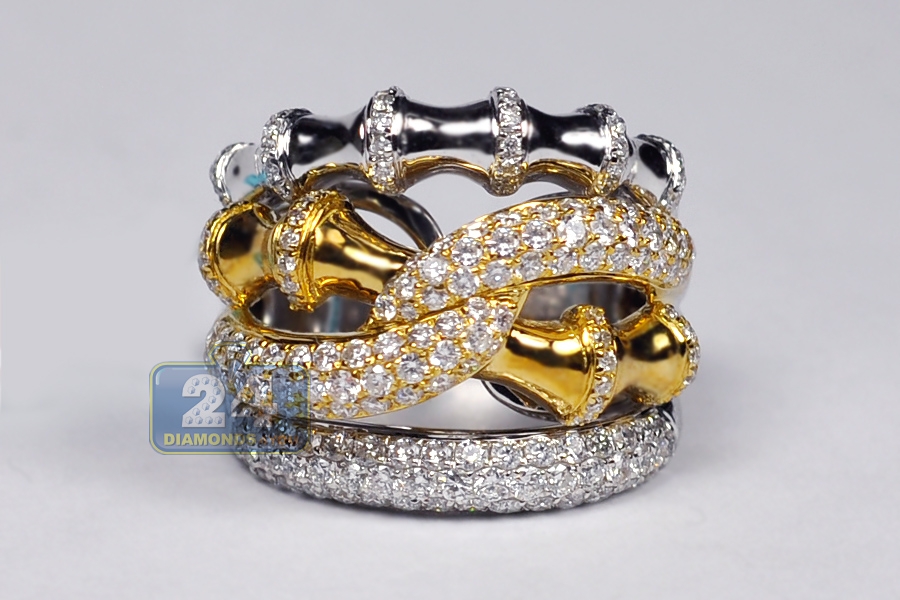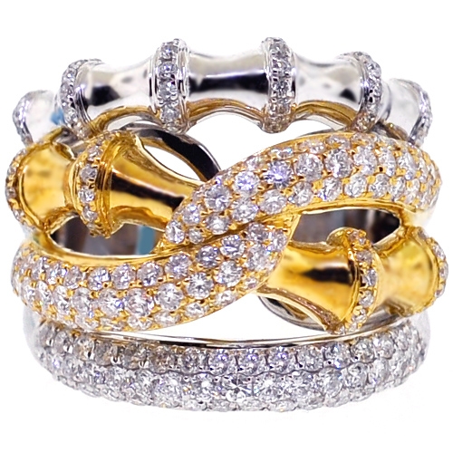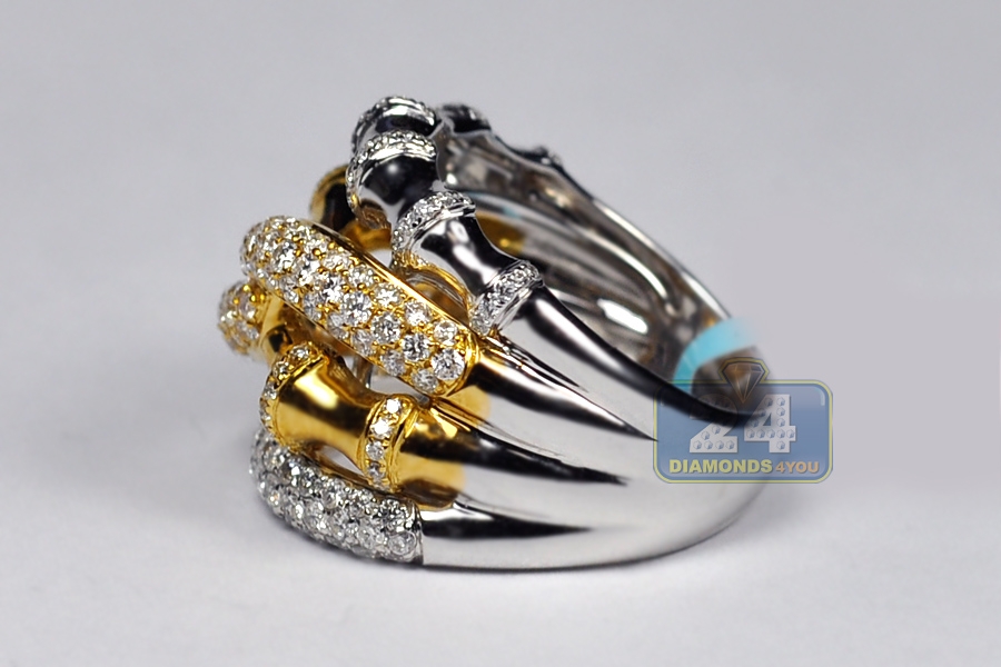 Womens Diamond Bamboo Ring 18K Two Tone Gold 1.89 ct