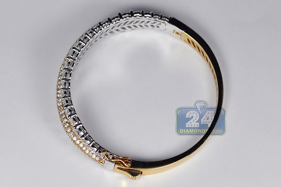 14K Two Tone Gold 10.13 ct Diamond Womens Bangle Bracelet