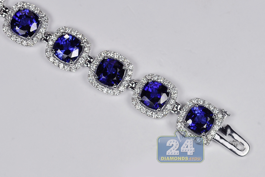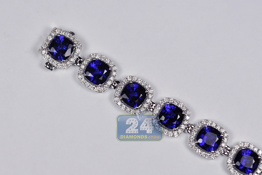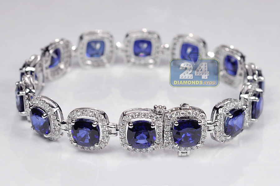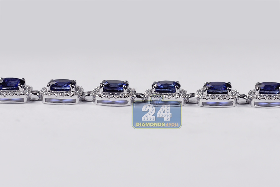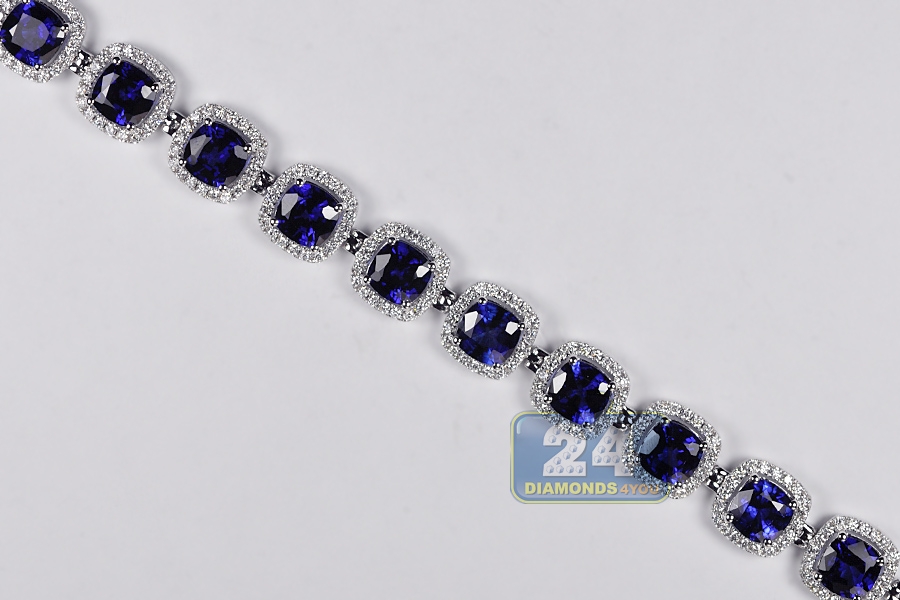 18K White Gold 29.08 ct Blue Sapphire Diamond Bracelet 7 inch