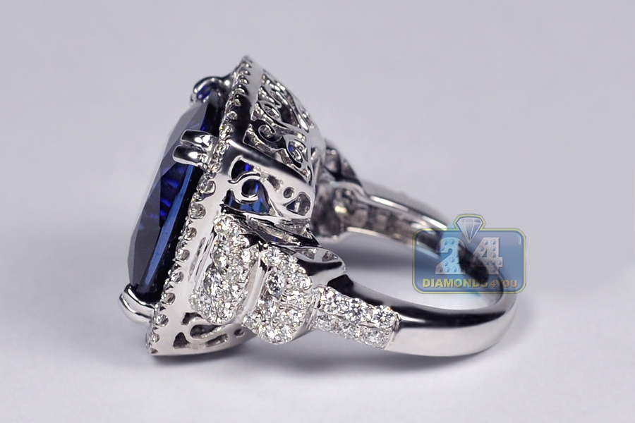 18K White Gold 29.64 ct Blue Sapphire Diamond Womens Ring