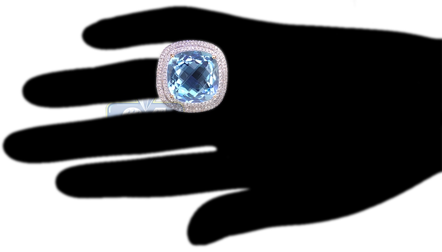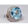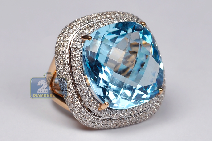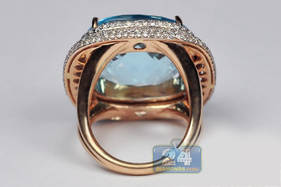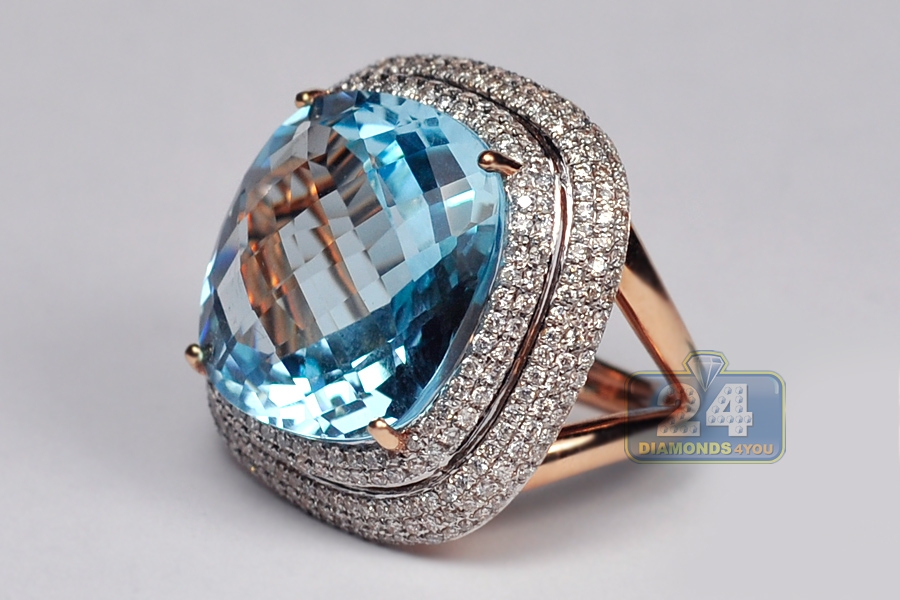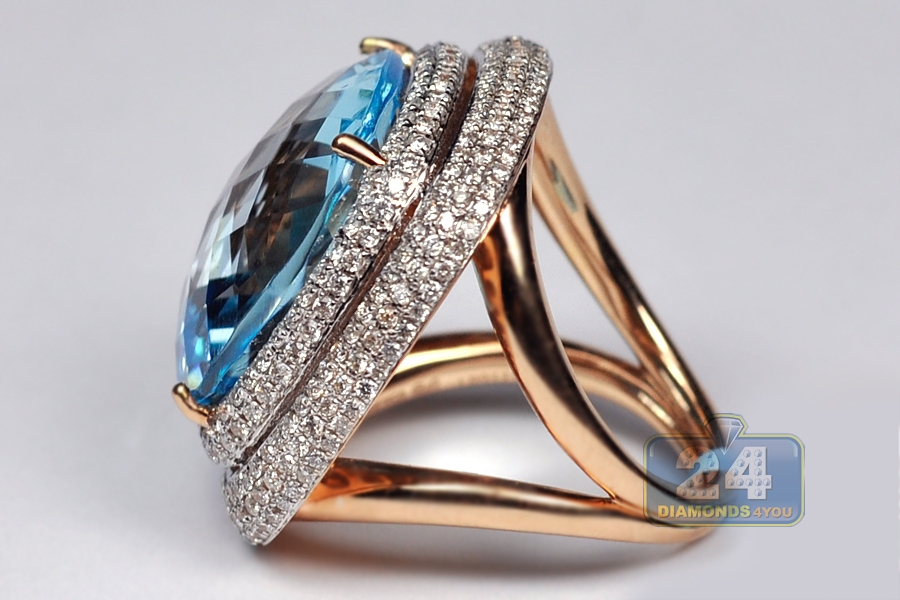 Womens Diamond Blue Topaz Ring 18K Rose Gold 32.75 ct