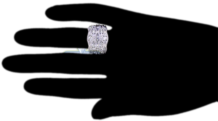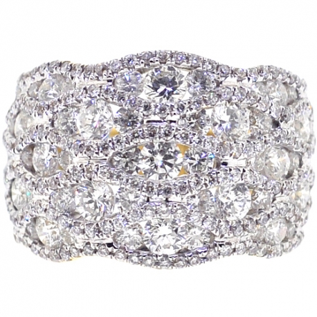 Original braided motif creates our stylish diamond ring that will look incredibly on the finger! Expertly handmade of warm 18k yellow gold, it has high-polished smooth finish. It's also studded with 3.77 carats of icy white round brilliant-cut natural diamonds. The widest part of the piece measures 15 mm, and the shank is 4 mm. This women's classy braided ring makes a sparkling style statement!
