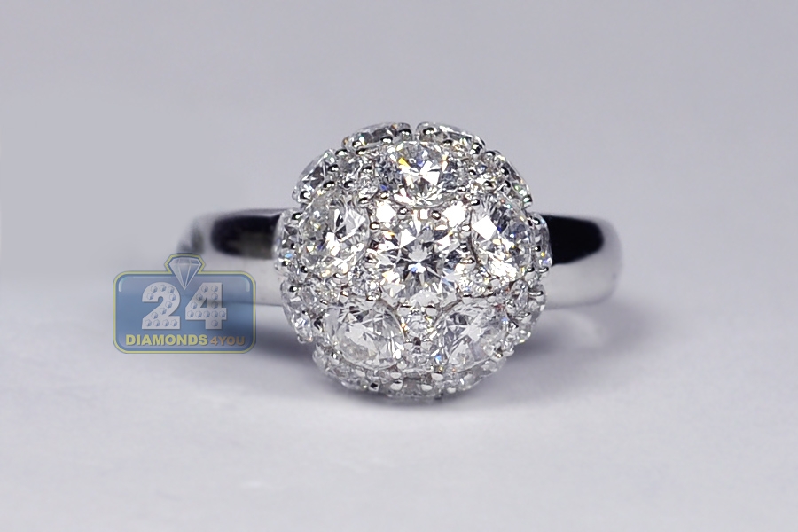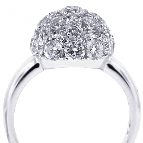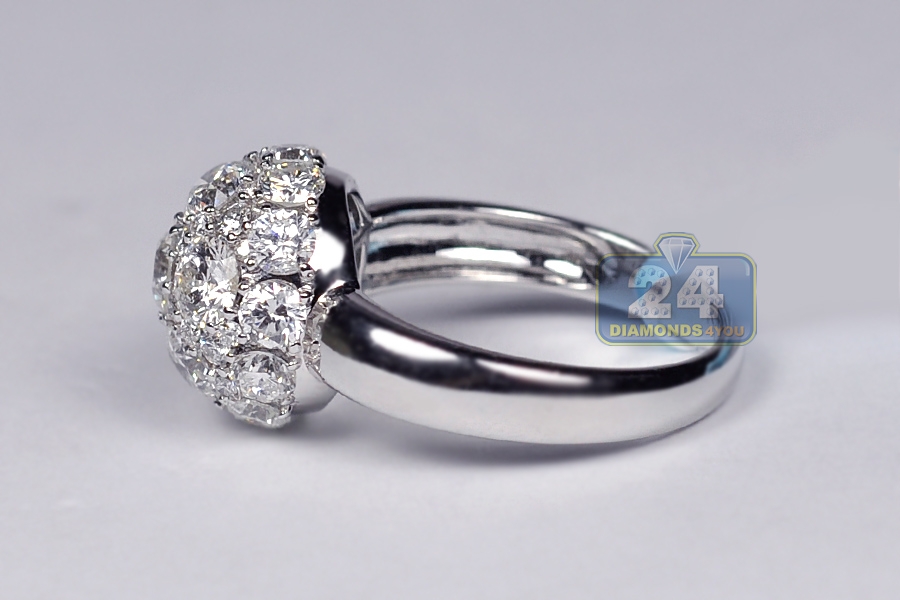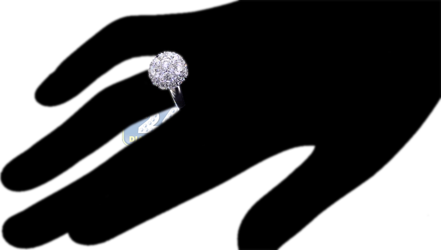 Iced out diamond ball of our women's stylish ring creates a truly luminous presentation! It's professionally handmade of cool 18k white gold, and has high-polished shiny finish. It's studded with 3.82 carats of icy white round brilliant-cut genuine diamonds. Those with a penchant for shimmer won't be disappointed when they see this unique cluster ring!