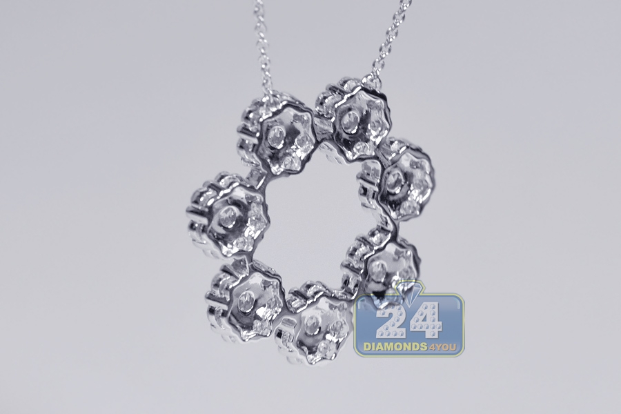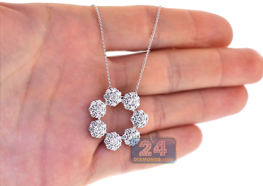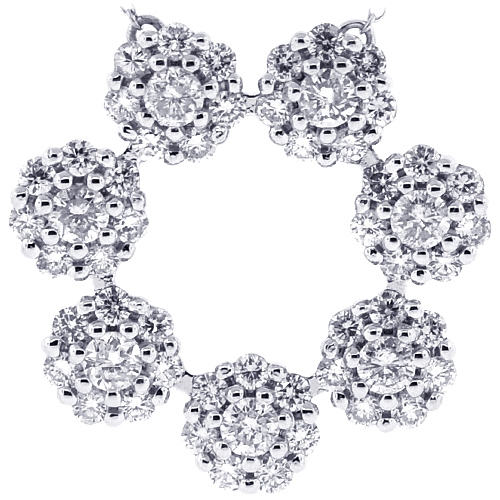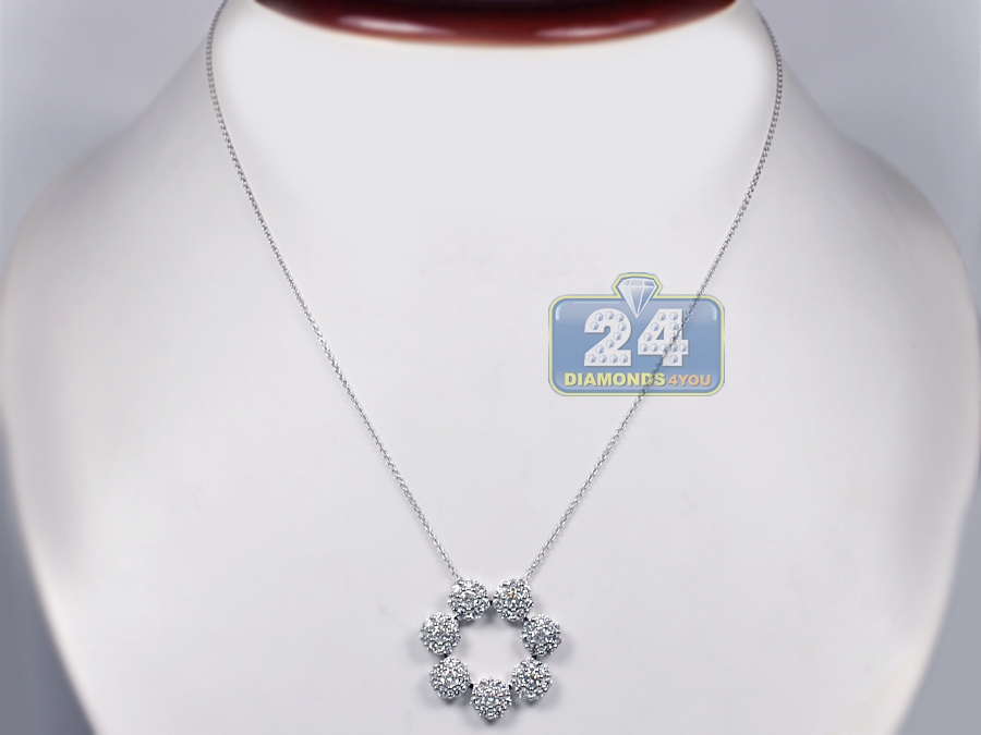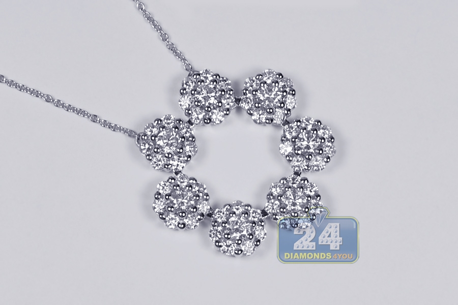 14K White Gold 2.66 ct Diamond Cluster Circle Womens Necklace