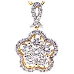 14K Yellow Gold 1.26 ct Diamond Cluster Womens Drop Pendant