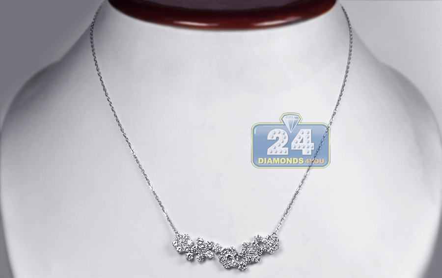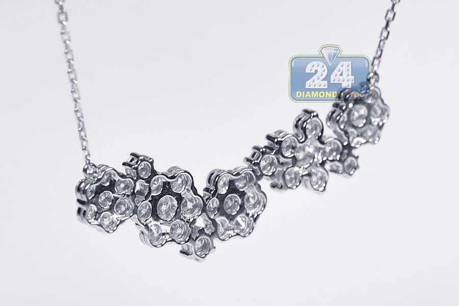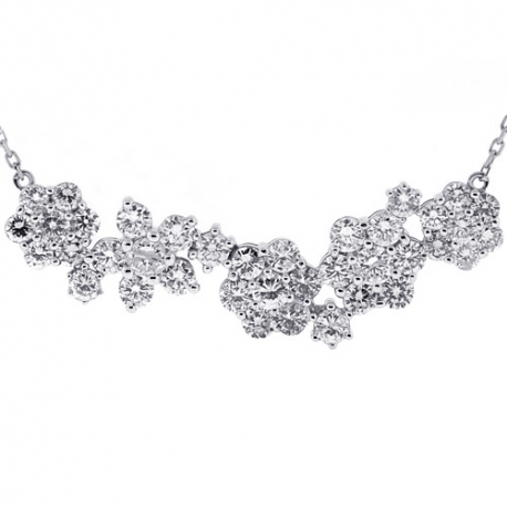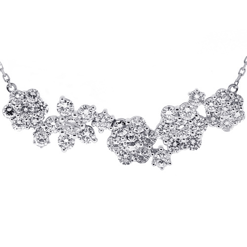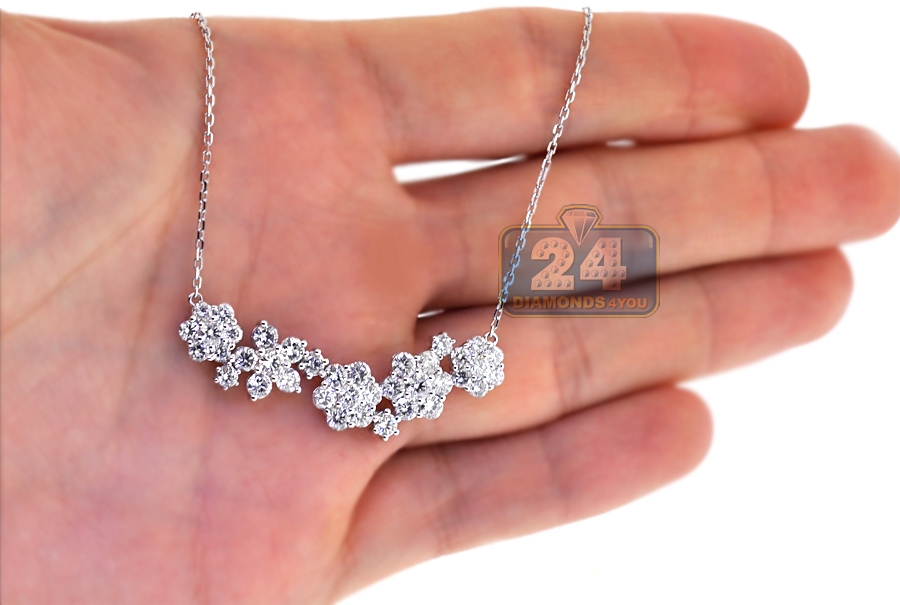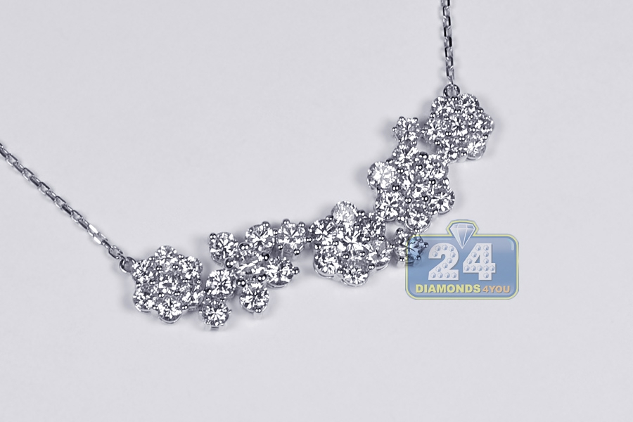 14K White Gold 4.31 ct Diamond Cluster Womens Flower Necklace
