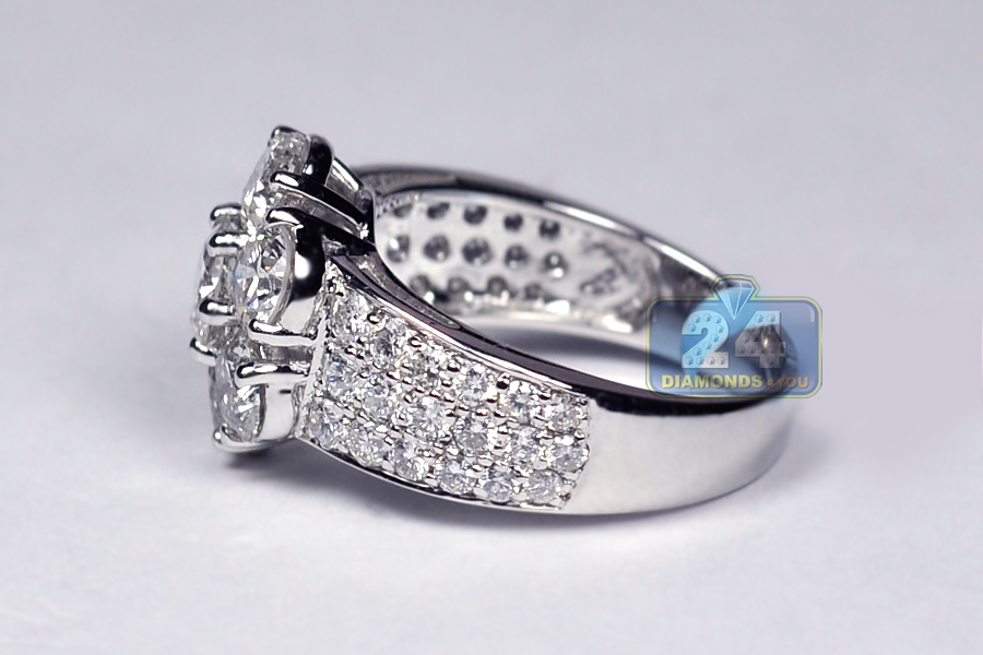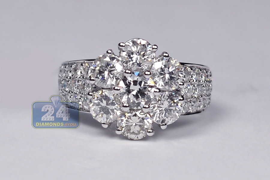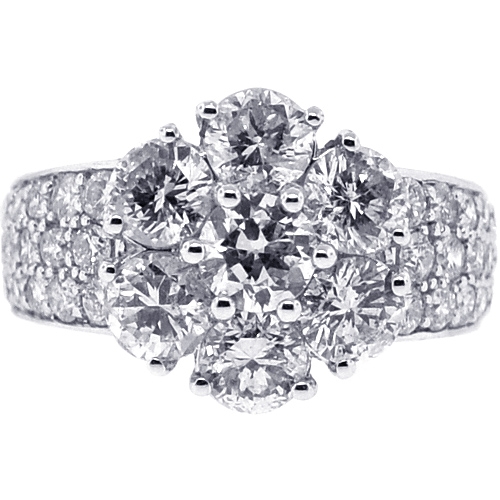 18K White Gold 3.75 ct Diamond Cluster Womens Ring