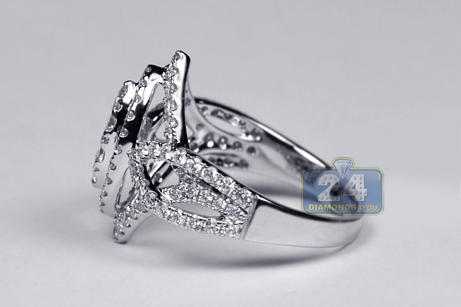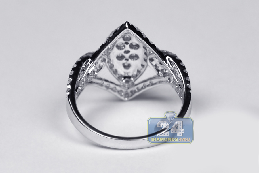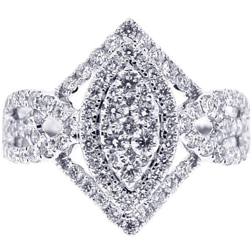 Womens Diamond Cluster Ring 18K White Gold 1.24 ct