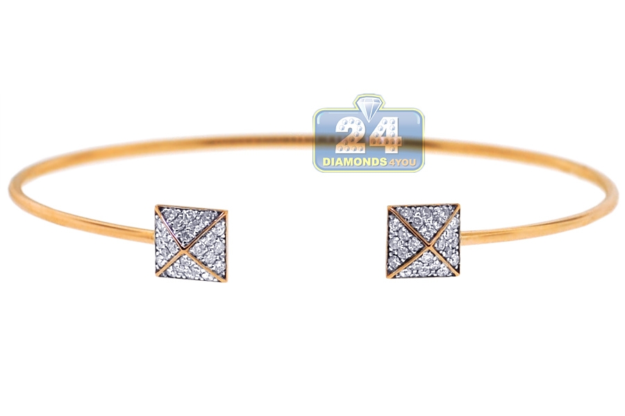 14K Yellow Gold 0.42 ct Diamond Pyramid Womens Cuff Bracelet