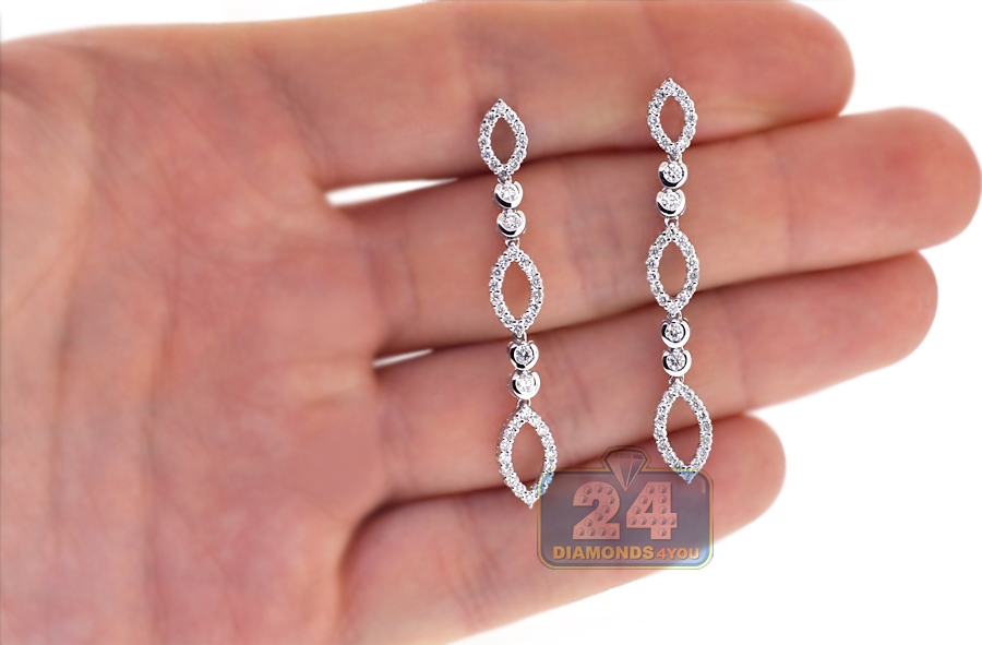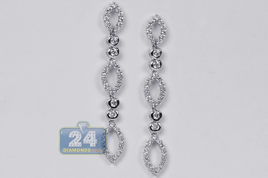 18K White Gold 1.31 ct Diamond Womens Drop Earrings