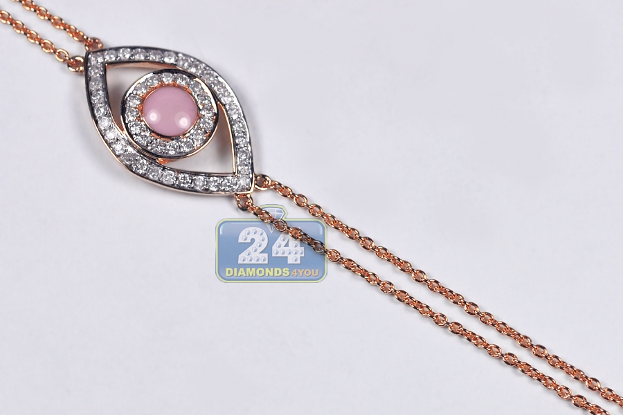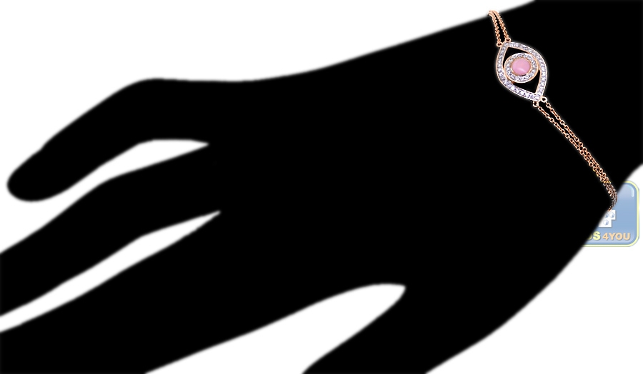 14K Rose Gold 0.15 ct Diamond Womens Evil Eye Bracelet 7 Inch