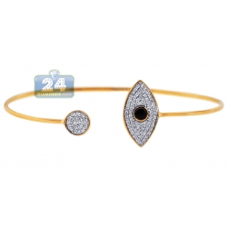 14K Yellow Gold 0.39 ct Diamond Evil Eye Womens Cuff Bracelet