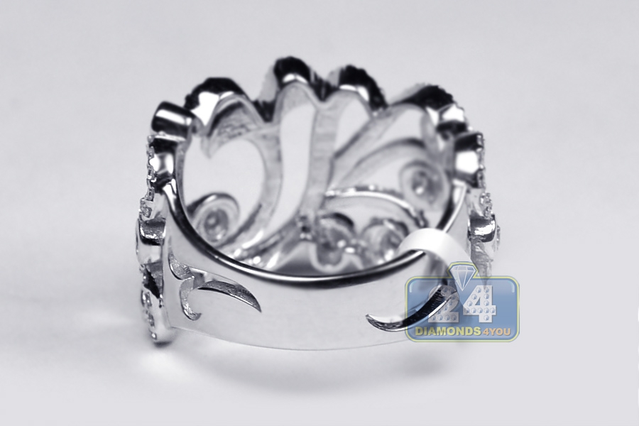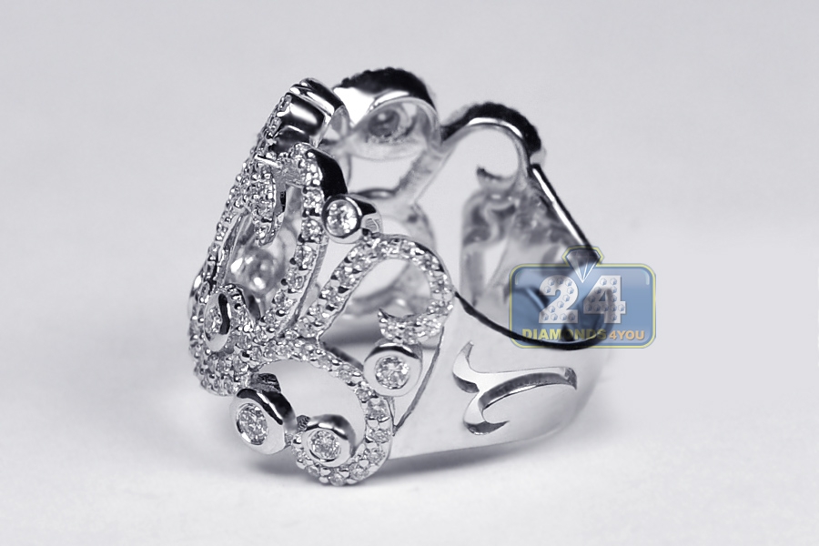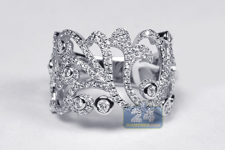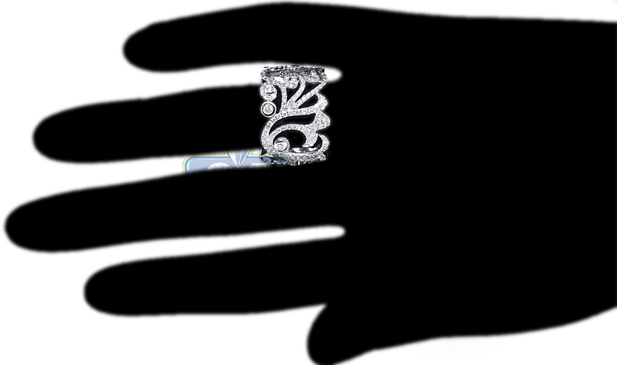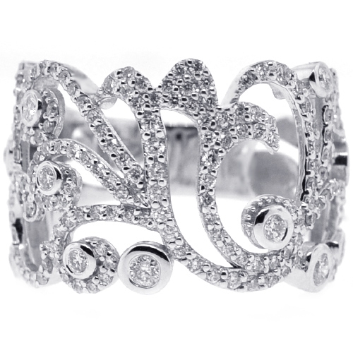 Our stunning floral ring has a display that dazzles the eye! Masterly produced from cool 18k white gold with shiny finish, it is amazed with 1.22 carat of icy white round brilliant-cut genuine diamonds. Experience ultimate beauty with this women's filigree band!