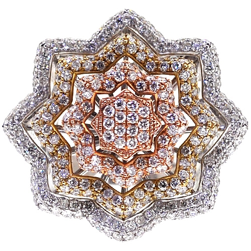 14K Three Tone Gold 5.16 ct Diamond Flower Womens Ring