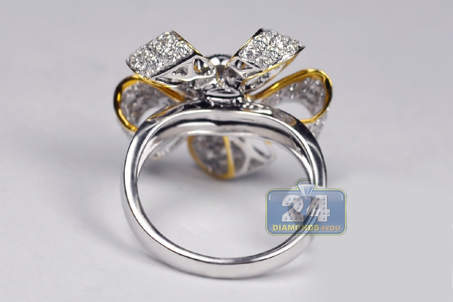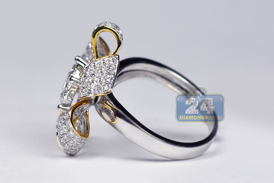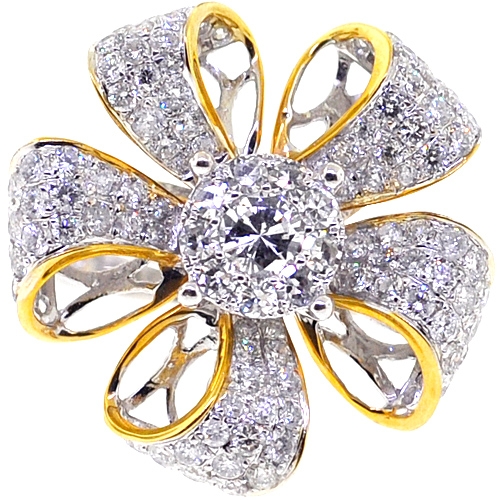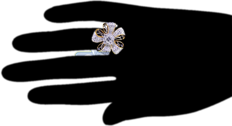 14K Two Tone Gold 1.80 ct Diamond Flower Womens Ring