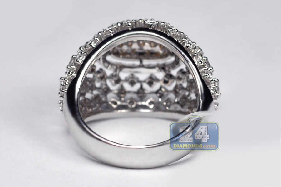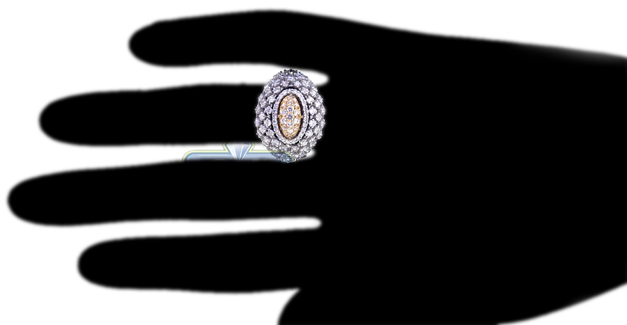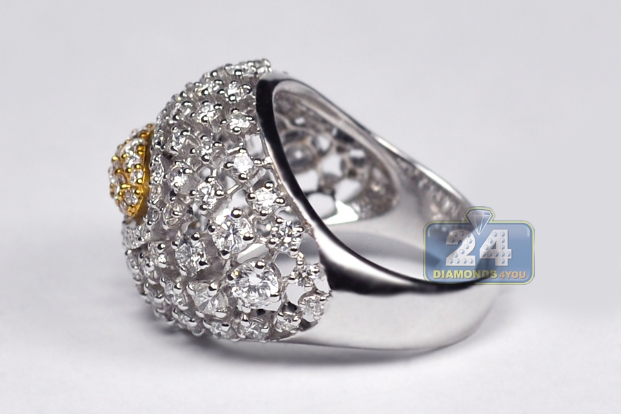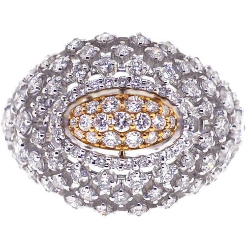 Womens Diamond Lattice Dome Ring 18K Two Tone Gold 2.48 ct