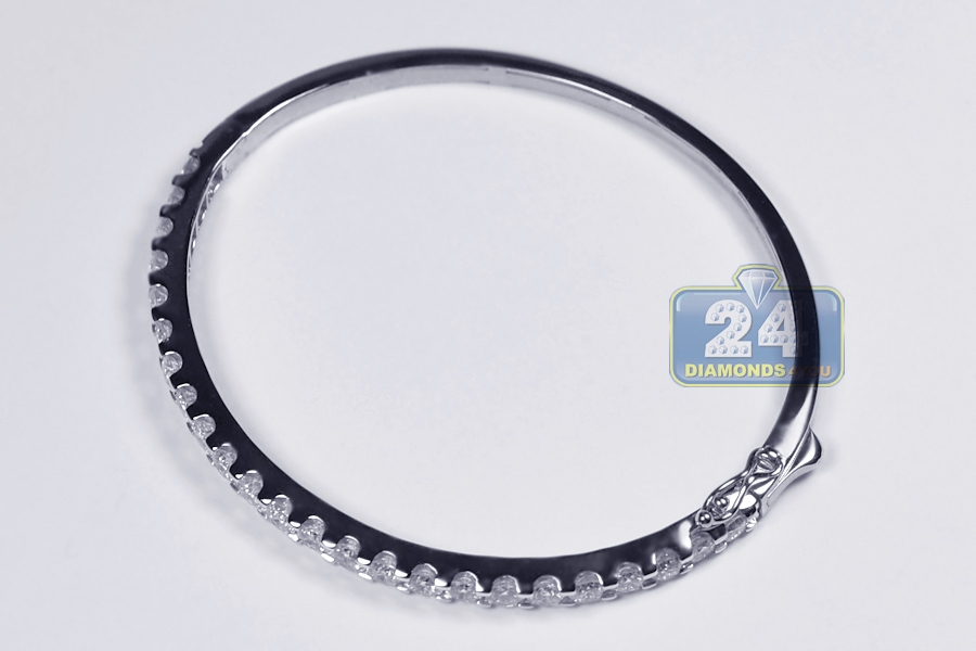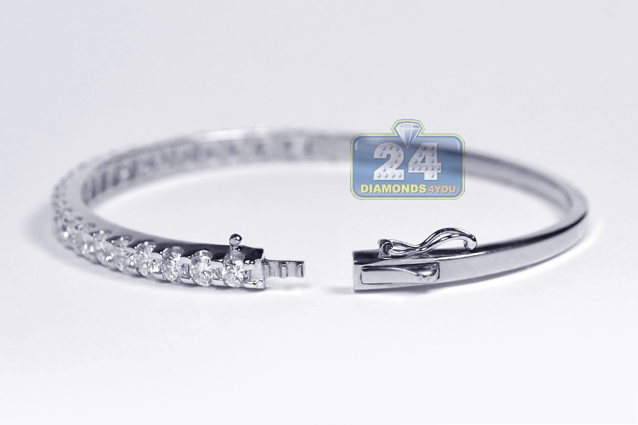 14K White Gold 4.18 ct Diamond Womens Oval Bangle Bracelet