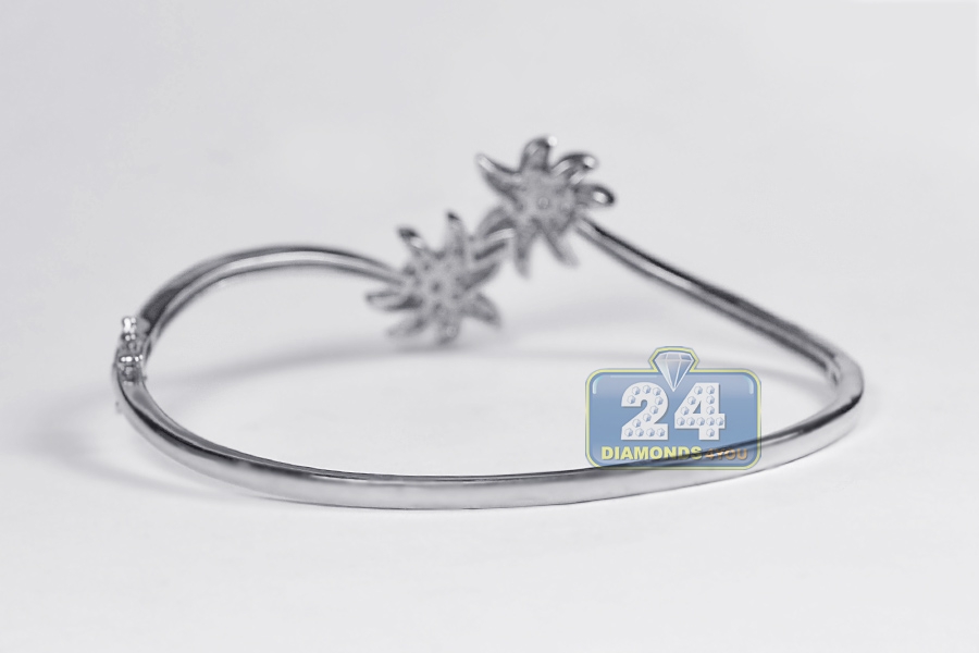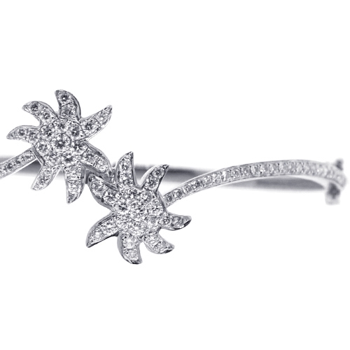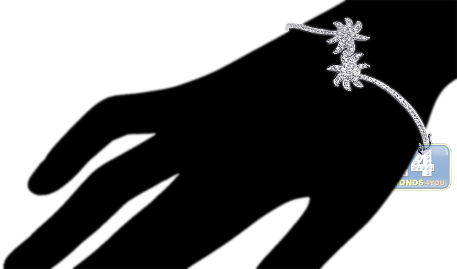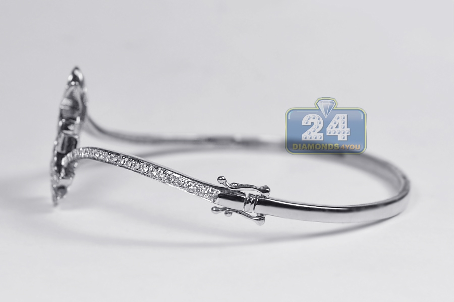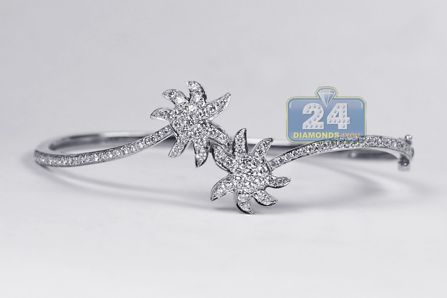 14K White Gold 1.66 ct Diamond Palm Womens Bangle Bracelet