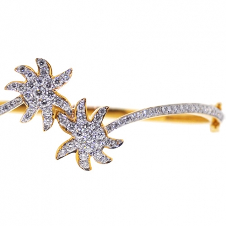 14K Yellow Gold 1.65 ct Diamond Palm Womens Bangle Bracelet