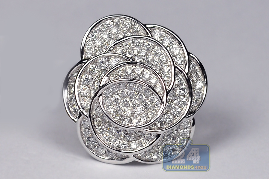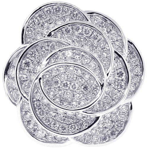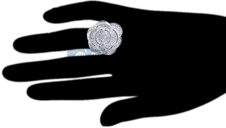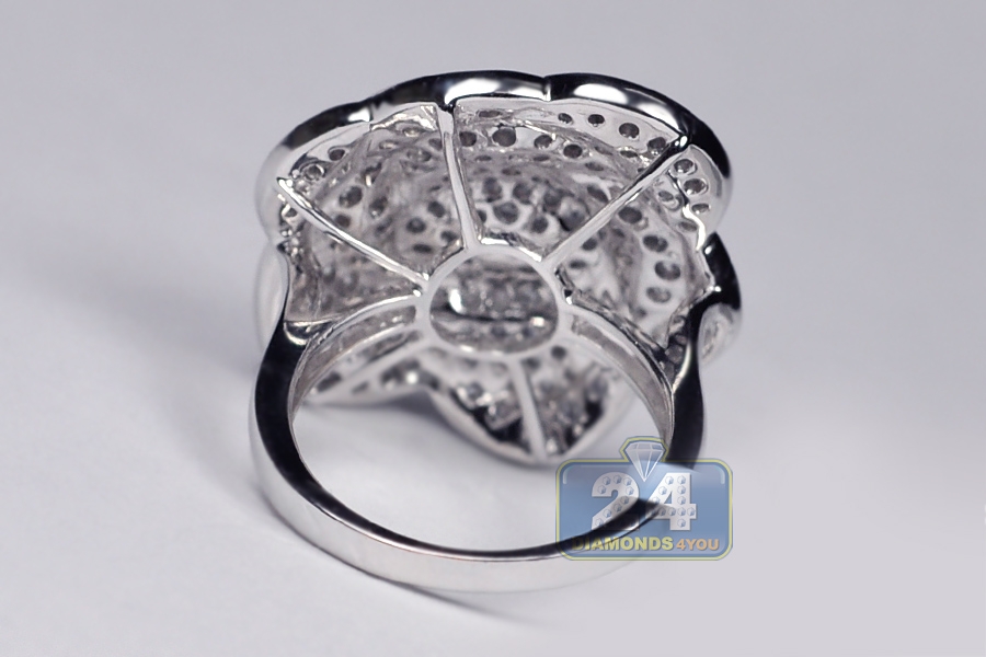 14K White Gold 2.26 ct Diamond Pave Womens Flower Ring