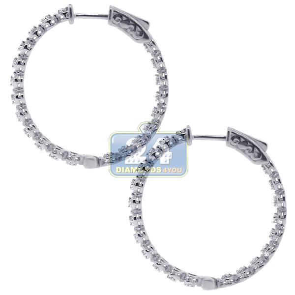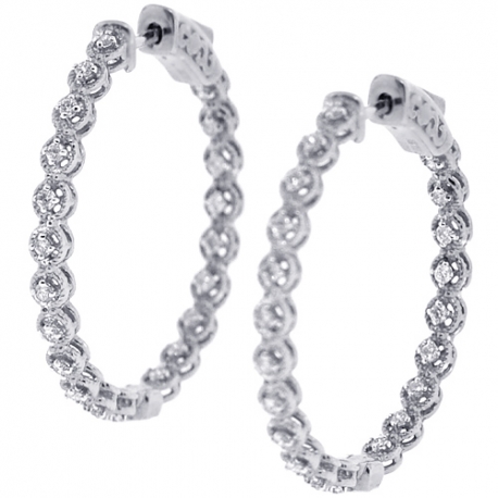 Get ready to shine with our lovely pair of round hoop earrings! Masterly produced from cool 18 karat white gold, they are set with round brilliant-cut white diamonds totaling 0.36 carat. Our women's diamond hoops measure 30 mm in hanging length, 3 mm in width, and secured by comfortable hinged post. These women's inside-out earrings will make you the talk of the event!