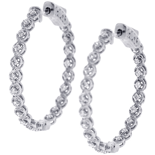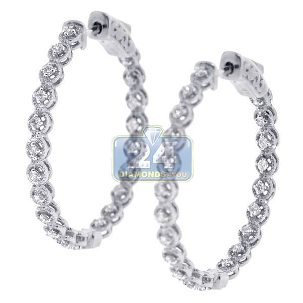 18K White Gold 0.36 ct Diamond Womens Round Hoop Earrings