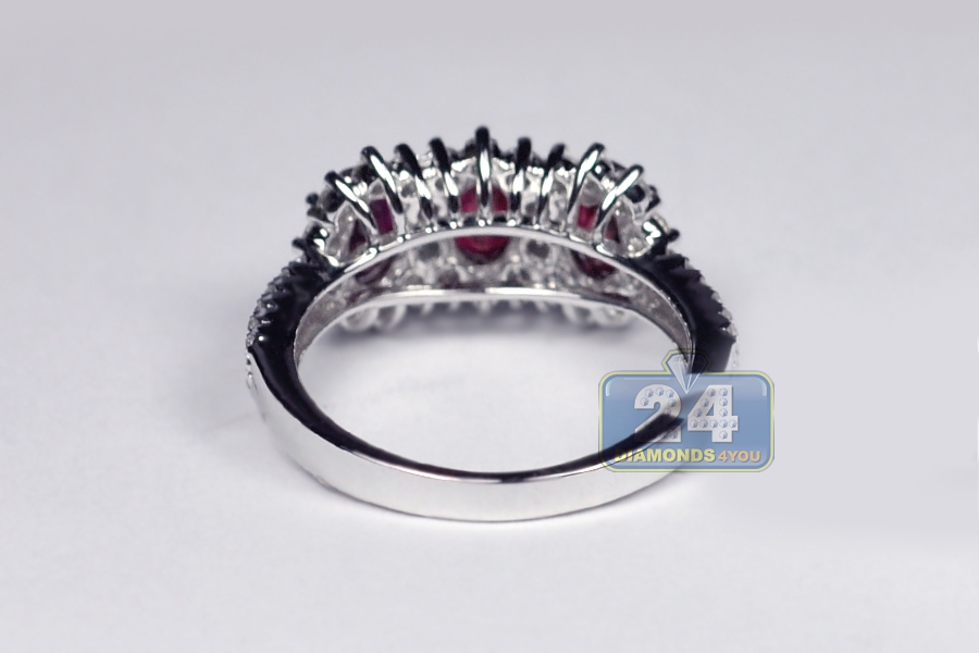 Womens Diamond Ruby 3 Stone Halo Ring 18K White Gold 2.58 ct