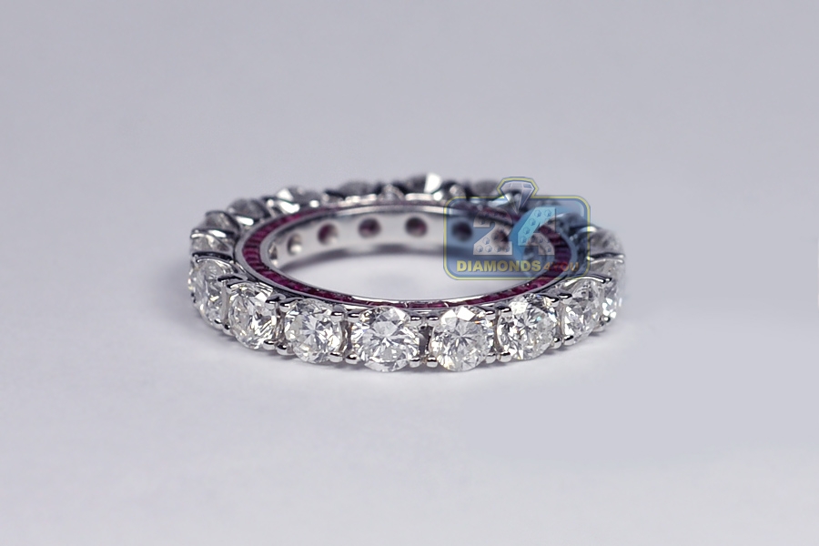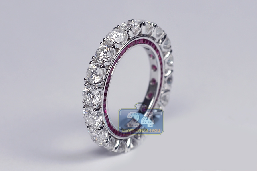 18K White Gold 6.95 ct Diamond Ruby Womens Eternity Ring
