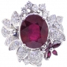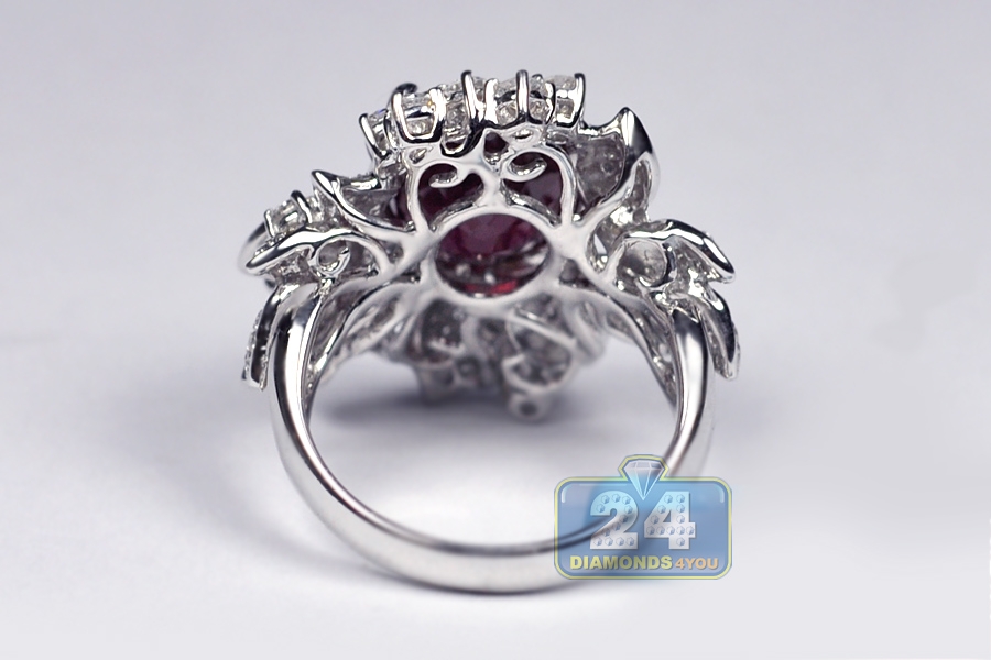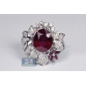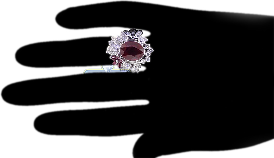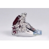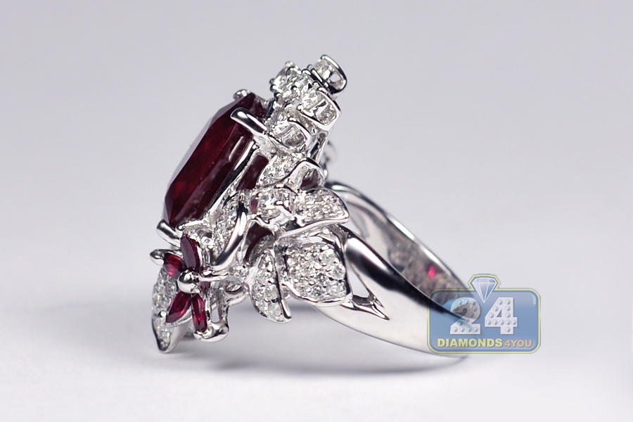 Womens Diamond Ruby Flower Ring 18K White Gold 8.55 ct