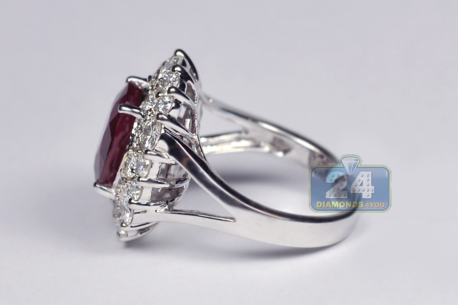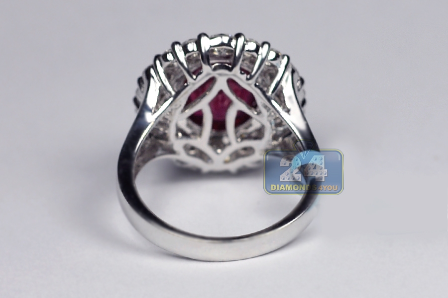 Womens Diamond Ruby Gemstone Ring 18K White Gold 7.22 ct