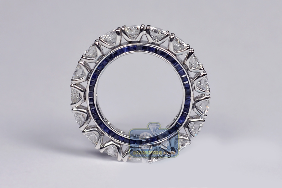 18K White Gold 6.89 ct Diamond Sapphire Womens Eternity Ring